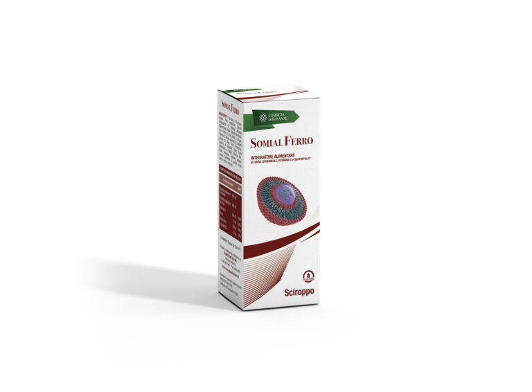 Somial Ferro Sciroppo è un integratore alimentare a base di Ferro in Liposomi (Lipofer®), Vitamina C, Acido folico ed estratti vegetali utile in tutti i casi di aumentato fabbisogno o di ridotto apporto con la dieta di tali importanti nutrienti. Un integratore alimentare che si avvale dell’innovativa tecnologia liposomiale. Somial Ferro è un integratore alimentare a base di ferro in Liposomi e Vitamina C utile in caso di carenze alimentari o aumentati fabbisogni organici di tati nutrienti. Il ferro contenuto in Somial Ferro è un ferro trattato con tecnologia liposomiale (inglobamento in fosfolipidi naturati) che permette di superare indenne l’ambiente gastrico ed essere assorbito direttamente a livello intestinale evitando così eventuali fastidi a livello gastrico. SOMIAL FERRO ® è un integratore alimentare a base di Ferro Liposomiale microincapsulato e Vitamina C Liposomiale, utile per colmare le carenze alimentari o gli aumentati fabbisogni organici di questo micronutriente. Cos’è un liposoma? Un liposoma è una struttura vescicolare di forma sferica composta da uno o più doppi strati di natura fosfolipidica. L'immagine illustra la composizione di un semplice liposoma composto da un doppio strato fosfolipidico monolamellare. La formazione e la struttura dei liposomi è dovuta alla natura anfifila (con regioni idrofile e idrofobe) dei fosfolipidi che lo compongono, le cui regioni omologhe si legano in un mezzo acquoso, quindi è  essenzialmente un processo meccanico di idratazione dei fosfolipidi. Quando il composto incapsulato è solubile in acqua, si posiziona all'interno della struttura mentre nel caso di un composto idrofobo si posizionerebbe nella membrana liposomiale. La produzione dei liposomi avviene attraverso i seguenti processi: 1) Evaporazione in fase inversa 2) Ultrasuoni di fosfolipidi emulsionati 3) Microfluidificazione I processi di produzione così come la scelta dei costituenti del liposoma sono fattori molto rilevanti che determinano l'efficienza della microincapsulazione, le caratteristiche della membrana nonché la struttura e le dimensioni liposomiali. La sospensione ottenuta con tale procedimento può essere liofilizzata per ottenere microcapsule in polvere. Questo processo innovativo ha suscitato grande interesse grazie alla possibilità di progettare liposomi "custom" con molteplici funzioni che fungono da veicoli per i principi attivi. Lo scopo della modulazione dei liposomi attraverso l'uso di fattori quali temperatura, pH, potenziale redox o affinità per uno specifico recettore è ottimizzare l'efficacia e la specificità degli attivi nel sito d'azione. I farmaci liposomiali godono di un'ottima accettazione, essendo accettati per la produzione di prodotti antivirali, antibiotici, enzimi, integratori alimentari e vaccini. ASSORBIMENTO E BIODISPONIBILITA' DEI SOMIAL FERRO ® Il composto pirofosfato ferrico contenuto in SOMIAL FERRO ® è incapsulato in un liposoma con una struttura composta da un doppio strato fosfolipidico ricco di lecitina. La tecnica della microincapsulazione del ferro produce liposomi molto stabili con la capacità di resistere all'acidità gastrica, che gli permette di raggiungere l'area intestinale nella sua interezza. In questo modo si previene la comparsa di disturbi gastrici dovuti all'azione pro-ossidante del ferro libero contenuto in altri sali di ferro convenzionali. Una volta superata la barriera gastrica, SOMIAL FERRO ® raggiunge l'intestino tenue dove viene  completamente assorbito da un tipo specifico di cellule epiteliali chiamate cellule M. I VANTAGGI DEL SOMIAL FERRO ® SONO: Contiene ferro liposomiale ad elevata biodisponibilità e assorbimento; Effetti collaterali (ES) Non provoca fastidi gastrici o reflusso poiché viene assorbito nel duodeno; Contiene vitamina C Liposomiale, il più potente facilitatore dell'assorbimento del ferro; Il suo incapsulamento liposomiale e il suo alto contenuto di fibre prevengono la comparsa della stitichezza; Il suo pratico formato in polvere che può essere assunto direttamente senza bisogno di acqua; Non lascia un sapore metallico dopo il consumo, un problema molto comune in altri integratori di ferro; Un fantastico sapore di fragola lo rende più piacevole, soprattutto per i bambini; La sua ottima tollerabilità migliora notevolmente l'aderenza alla terapia. no assorbiti completamente e direttamente nell'intestino. SOMIAL FERRO ® BIODISPONIBILITA' Uno studio comparativo dell'assorbimento e della biodisponibilità del ferro in SOMIAL FERRO ® è stato effettuato con altri sali di ferro contenuti in altri prodotti commercializzati. Lo studio ha rivelato che sia l'assorbimento che la biodisponibilità del pirofosfato ferrico contenuto in SOMIAL FERRO ®sono notevolmente superiori a quelli presentati dagli altri composti di ferro utilizzati nel confronto. L'assorbimento di SOMIAL FERRO ® È risultato essere da 2 a 4 volte superiore rispetto ad altri sali come pirofosfato ferrico libero, solfato ferroso o gluconato di ferro, il che conferma la stabilità e l'efficacia del ferro liposomiale contenuto SOMIAL FERRO ®.